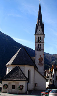 Gli abitanti del primitivo borgo di Alleghe iniziarono a trasferirsi più a monte, sotto le pendici della Civetta, ma nel maggio 1771 vi fu una nuova frana dallo Spitz, che precipitando nel bacino d’acqua che si stava lentamente formando, con la sua forza d’urto danneggiò ancor più l’antica chiesa di Alleghe, che stava per essere sommersa delle acque. Alcune parti della vecchia chiesa, in stile romanico risalente al XII secolo, poi rifatta nel XV secolo con gusto gotico, vengono però portate in salvo e riutilizzate nella nuova chiesa eretta nel 1773 dove ora la vediamo.